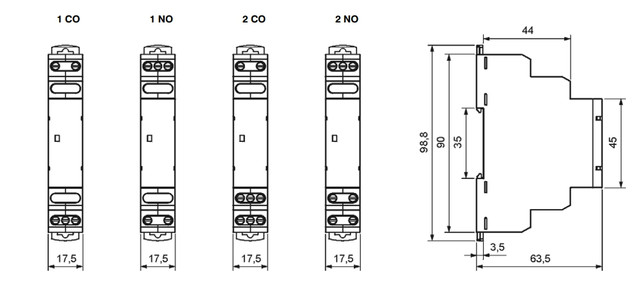 - Виготовлення — на DIN — рейку 35 мм. ширина 17,5 мм.